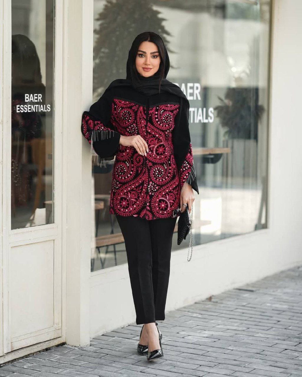 ست مانتو شلوار اداری مشکی دکمه طلایی
