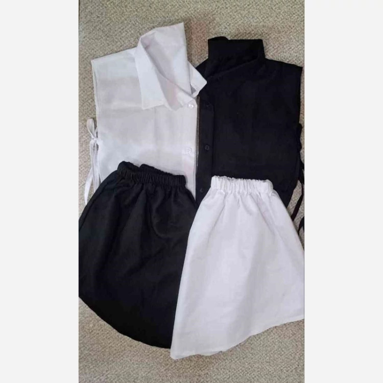 🖋نام : دامنک 👚جنس : اسکاچی(مشکی) ،سفید تترون 🌈رنگ بندی : مشکی , سفید 📏سایزها : فری(38_52) , 📝توضیحات ✅قددامنک40 ✅دورکمر با کشش 128 ✅ جلوی دامن دکمه ندارد ✅