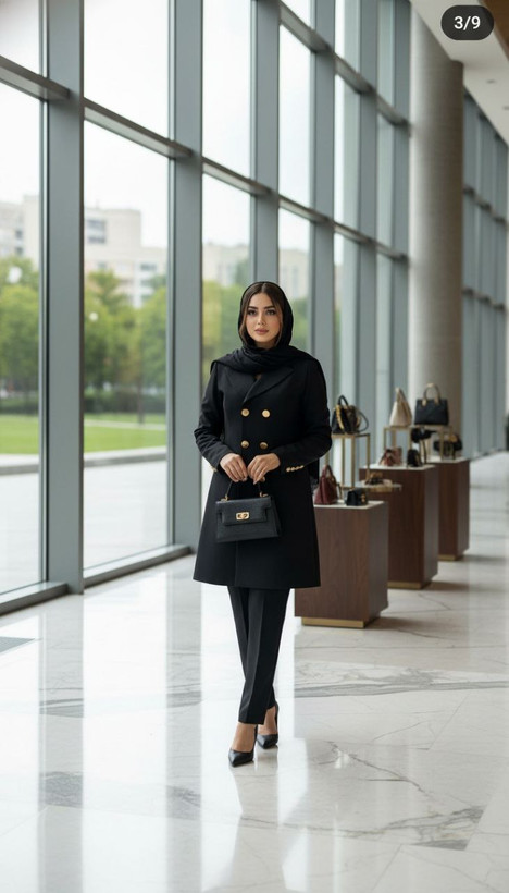ست مانتو شلوار اداری مشکی دکمه طلایی