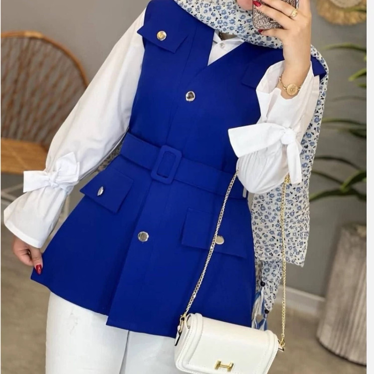 نام : وست وشومیز جنس : جنس وست کرپ مازراتی جنس شومیز تترون رنگ بندی : ابی کاربنی سایز ها : 1(38_42), 2(44_46) دورسینه سایز یک 100✅️ دورباسن سایز یک 105✅️ دور سینه سایز دو 106✅️ دور سینه سایز دو 112 ✅️ قد شومیز 80✅️ قد رویه 70 ✅️ جلوی سارافون لایه کاری✅️ دوخت مزونی ✅️ دکمه ها کاربردی✅️ رویه از سارافون جداست✅️ همراه کمربند مطابق ژورنال✅️ ارسال فوری